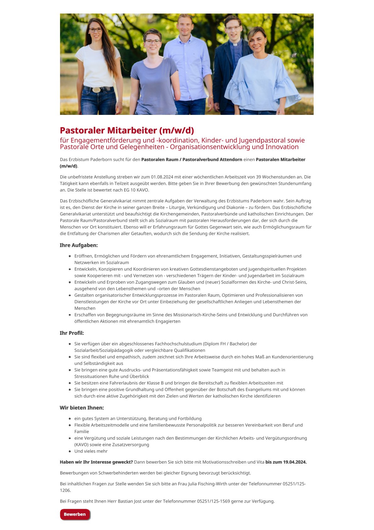 Die genaue Stellenausschreibung des Erzbistums Paderborn mit der Möglichkeit sich zu bewerben finden Sie hier.